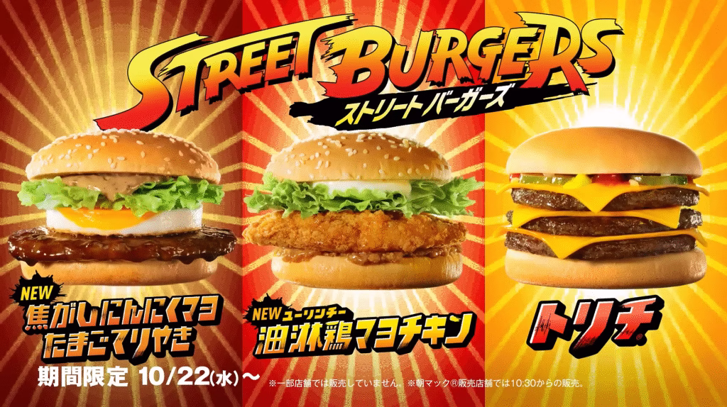 2025年10月22日より、「焦がしにんにくマヨたまごてりやき(てりやき × リュウ)」「油淋鶏マヨチキン(チキンフィレオ® × チュン・リー)」「トリチ®(ダブチ® × ケン)」などを期間限定で販売。