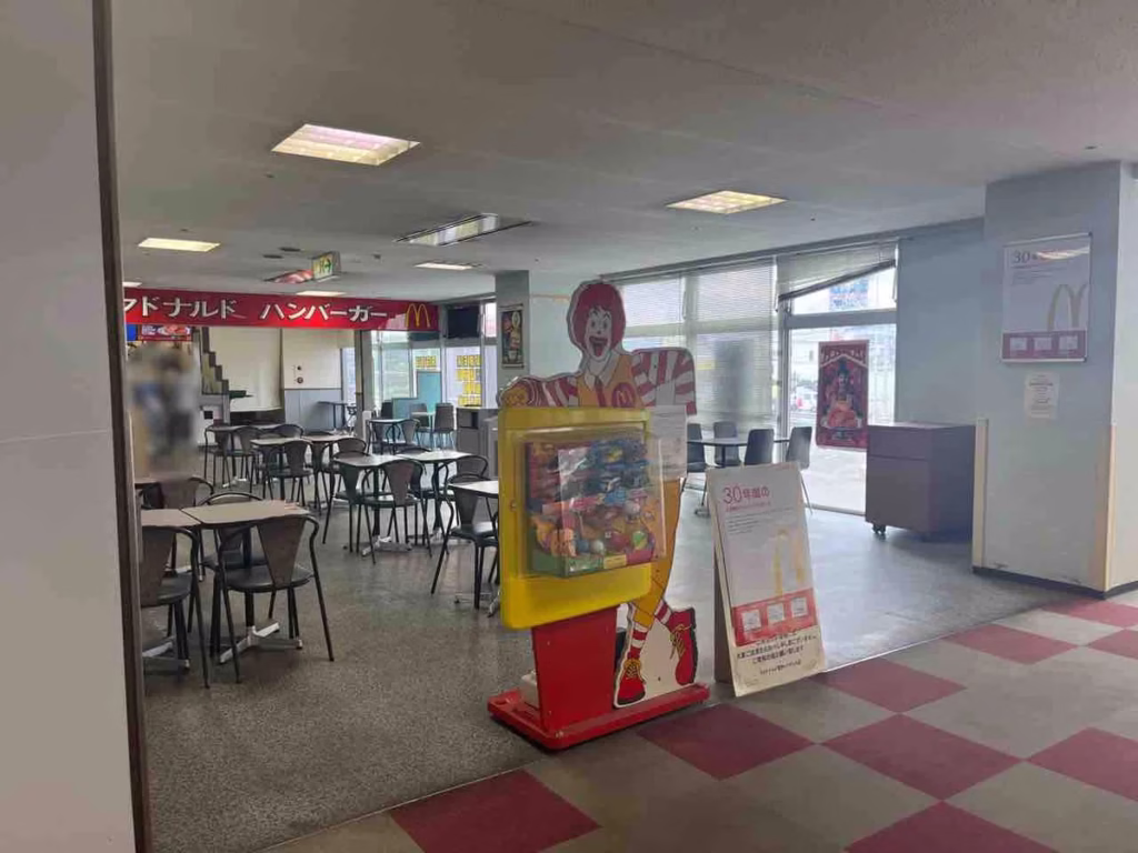 - 見どころ:絶滅寸前の「ドナルドの等身大パネル」が現存。オールドな内装とドナルドの組み合わせは、全国でも片手で数えるほどしかありません。