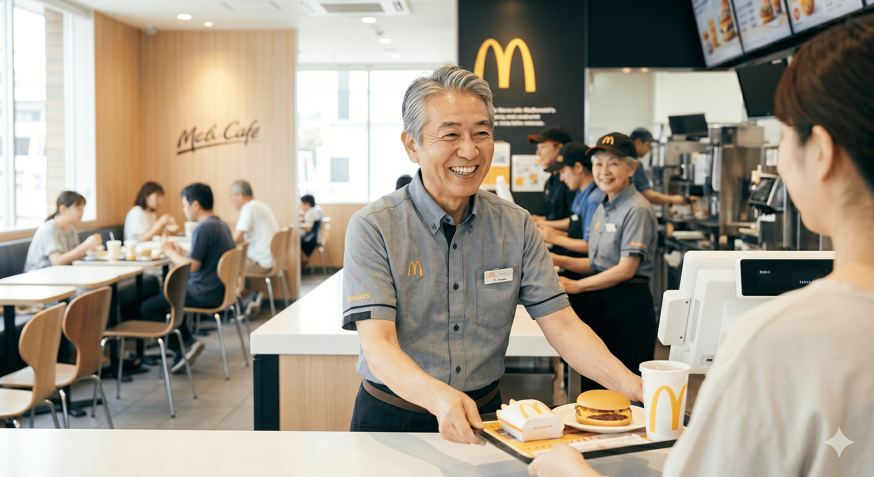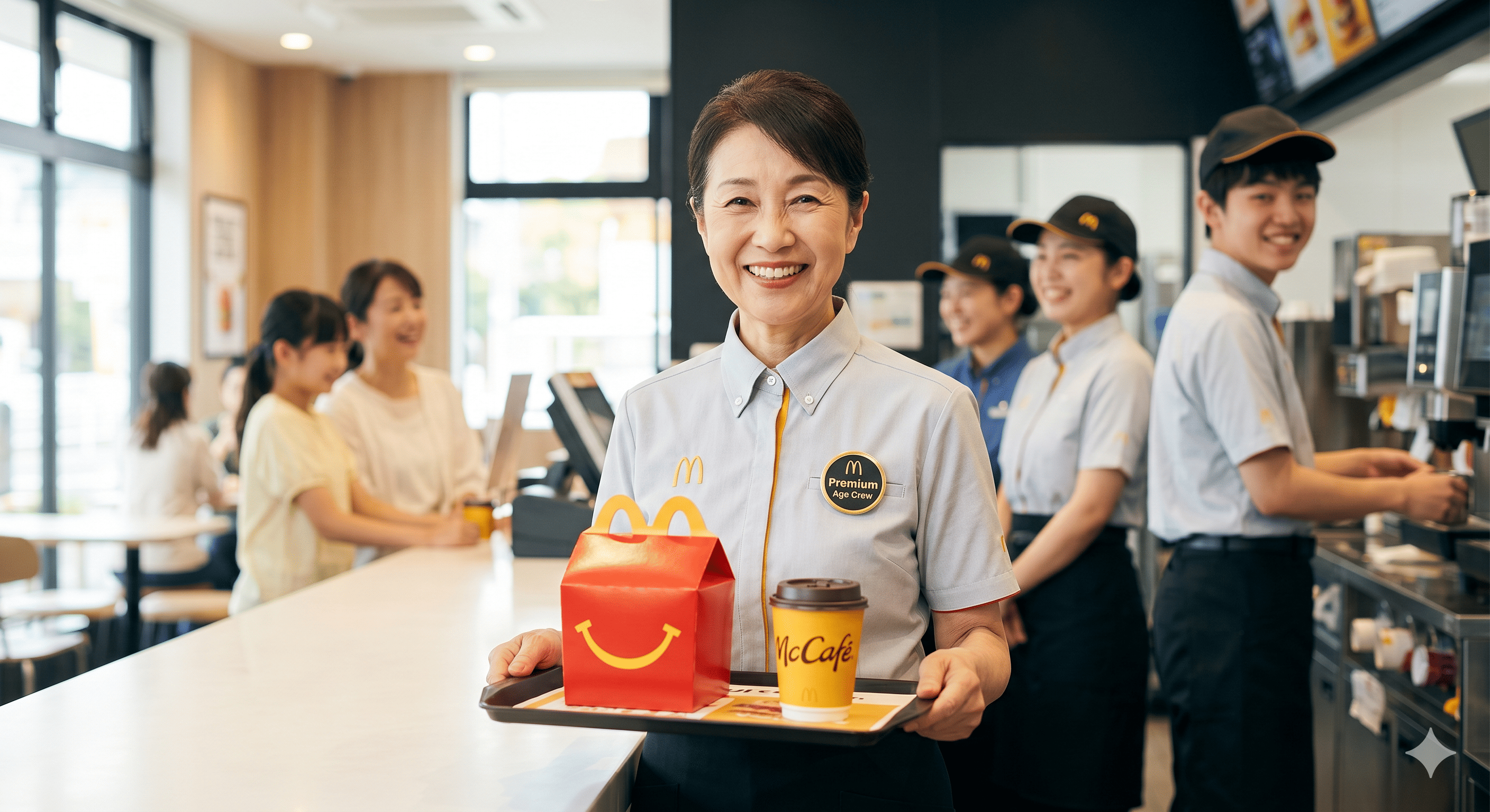 マクドナルドは「プレミアムエイジクルー」という名称で、 シニア世代の採用を積極的におこなっています。
