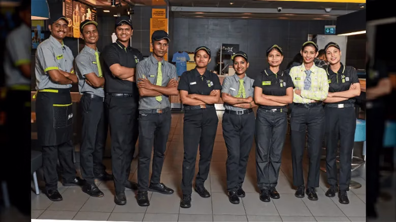 インドのマクドナルドのユニフォームは、ヨーロッパや北米のスタイルに近く、定番のポロシャツやグレーのボタンダウンドレスシャツに、鮮やかなグリーンのネクタイを合わせたデザインが特徴です。