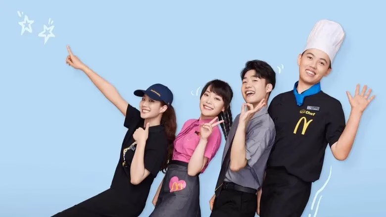 中国のマクドナルドでは、若い世代のスタッフを積極的に採用する目的で、親しみやすくフレンドリーな雰囲気の新ユニフォームを導入しています。